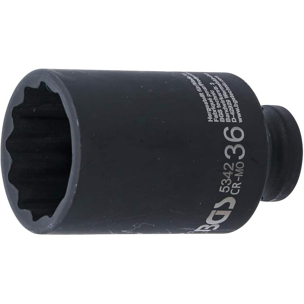 Ref. BGS-5342En savoir + sur Douille à Choc Longue 12,5 mm (1/2) 36 mm - Douze Pans - Puissance et Précision, Acier, Cliquet 1/2 - D-Work