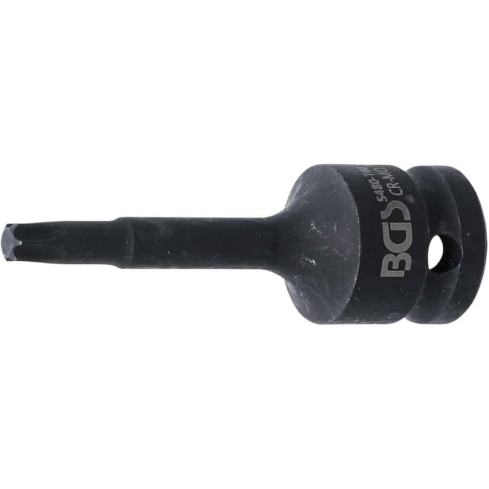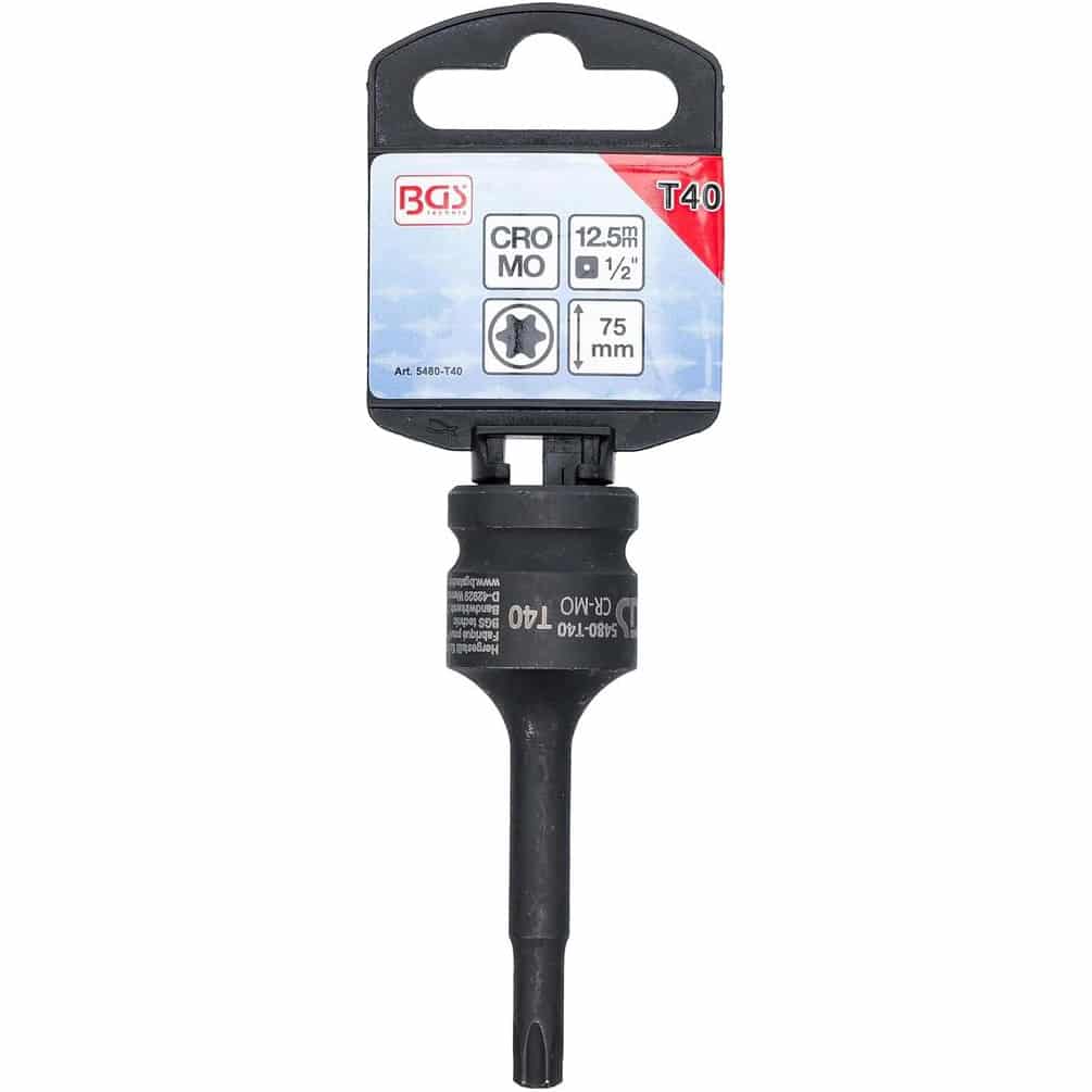 La Douille à Embouts à Choc BGS de 75 mm de longueur est conçue pour une utilisation avec des outils à choc. Elle possède un profil Torx T40 et un carré d'entraînement de 12,5 mm (1/2"), garantissant une fixation solide et une transmission optimale du couple. Ce produit est idéal pour les professionnels et les bricoleurs exigeants recherchant précision et durabilité.Caractéristiques principales