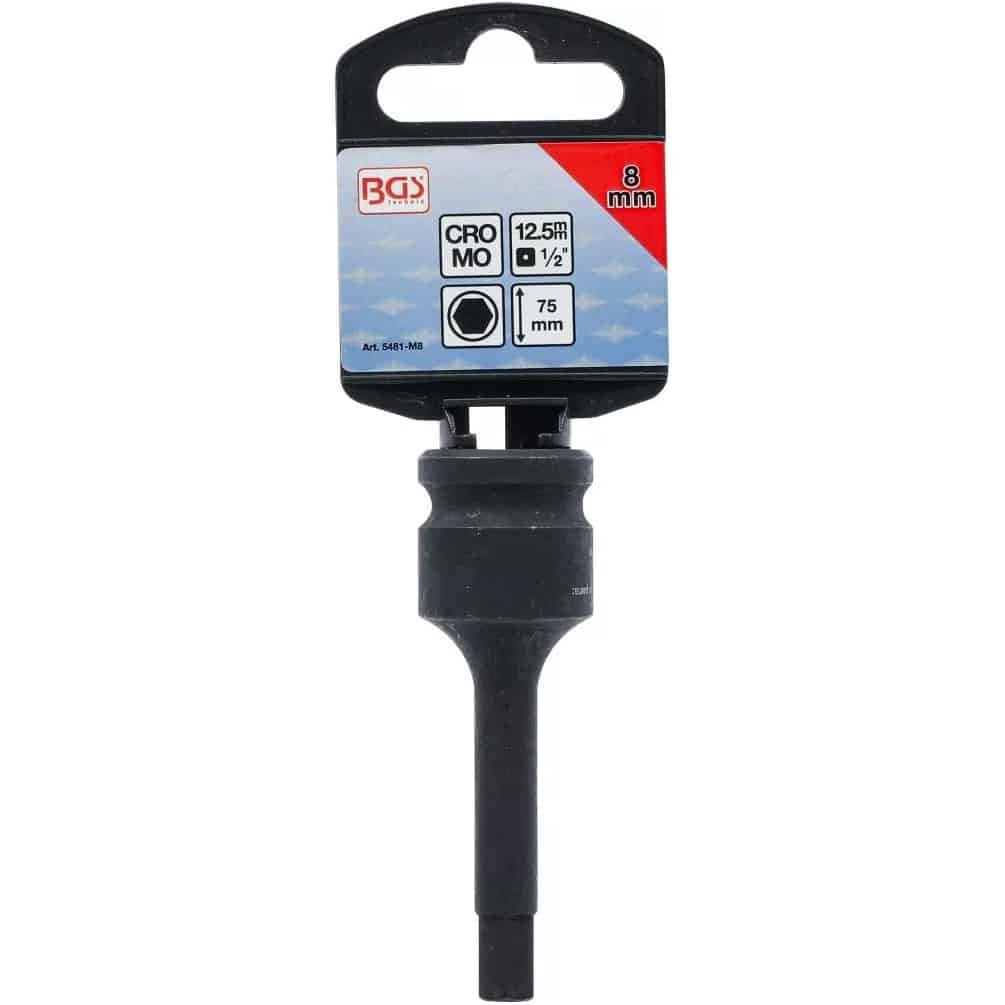 Ref. BGS-5481-M8En savoir + sur Douille à Embouts à Choc 75 mm - 12,5 mm (1/2), Six Pans Intérieurs 8 mm - Résistante et Précise - D-Work