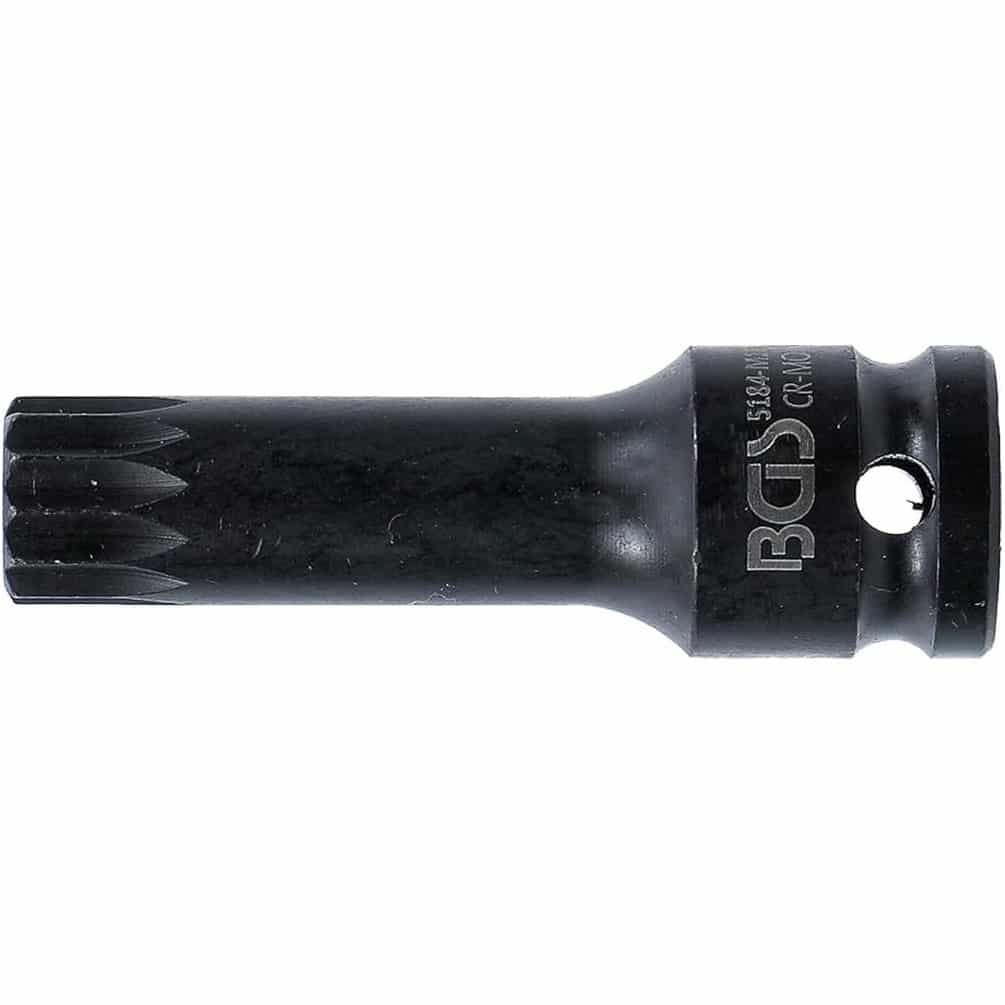 La Douille à Embouts à Choc BGS de 75 mm de longueur est conçue pour un usage professionnel et intensif. Avec un carré d'entraînement de 12,5 mm (1/2") et une denture multiple intérieure adaptée aux vis XZN M8, elle garantit une transmission optimale du couple et une excellente résistance aux chocs.Caractéristiques principales