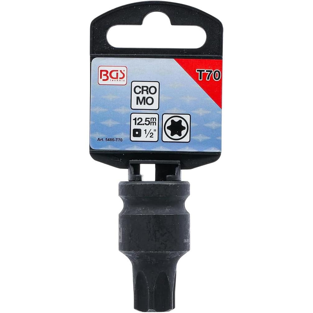 Ref. BGS-5486-T70En savoir + sur Douille à Embouts à Choc 42 mm - 12,5 mm (1/2), Profil Torx T70, Résistante et Précise, Acier - D-Work