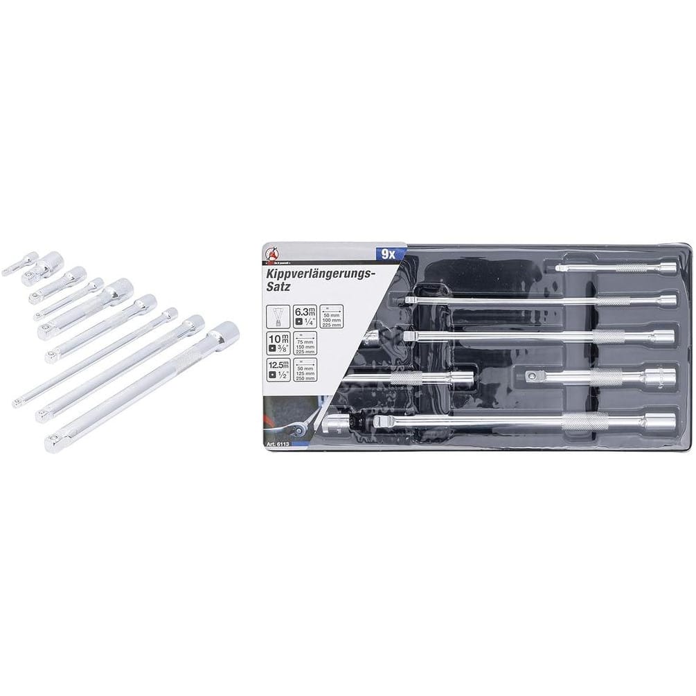 Jeu de Rallonges Basculantes 9 pcs - 6,3 mm (1/4), 10 mm (3/8), 12,5 mm (1/2) - Acier Résistant - Polyvalence et Pra - D-Work