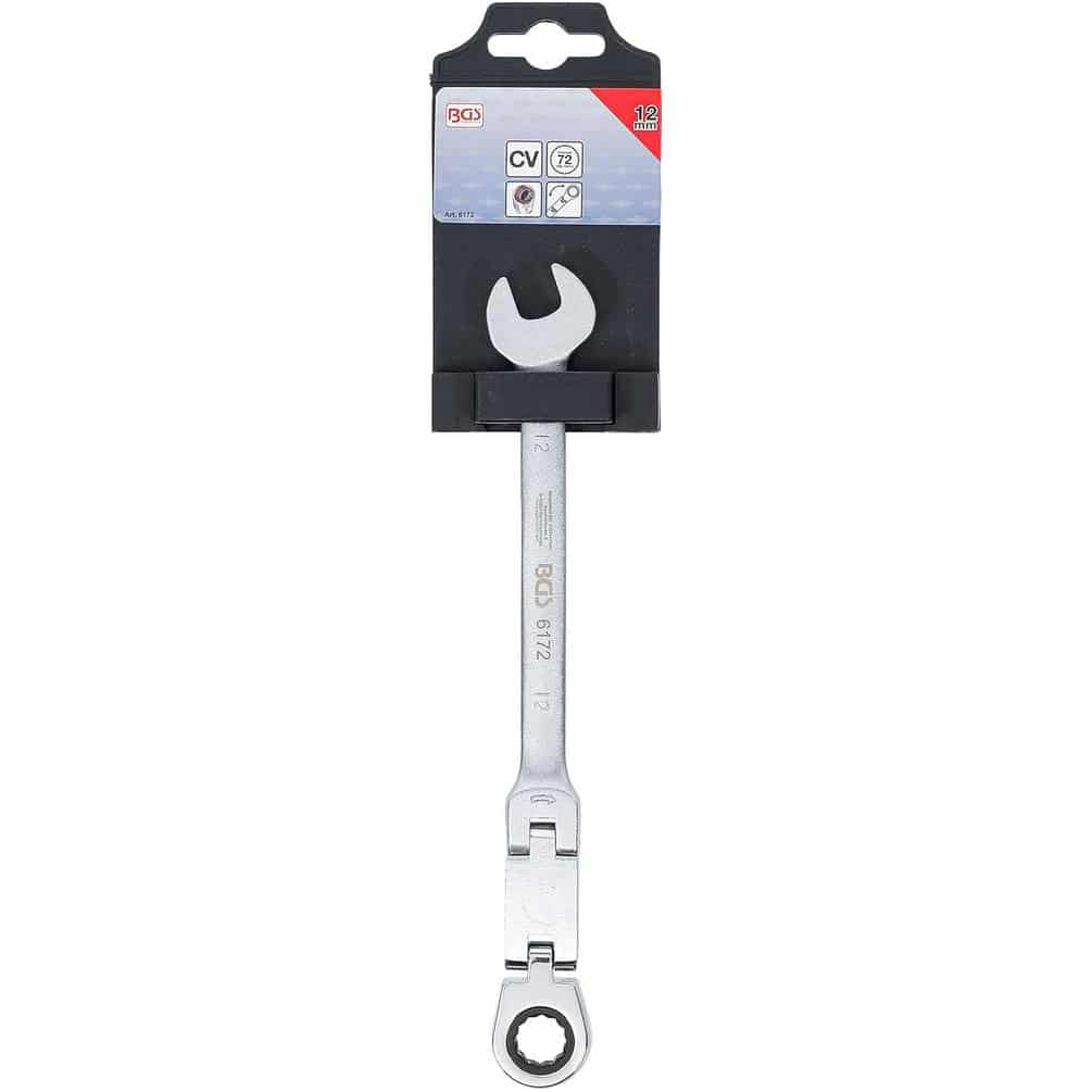 Ref. BGS-6172En savoir + sur Clé Mixte à Cliquet Pliable 12 mm - Double Articulation - Précision et Maniabilité, Acier, Zones Difficiles - D-Work
