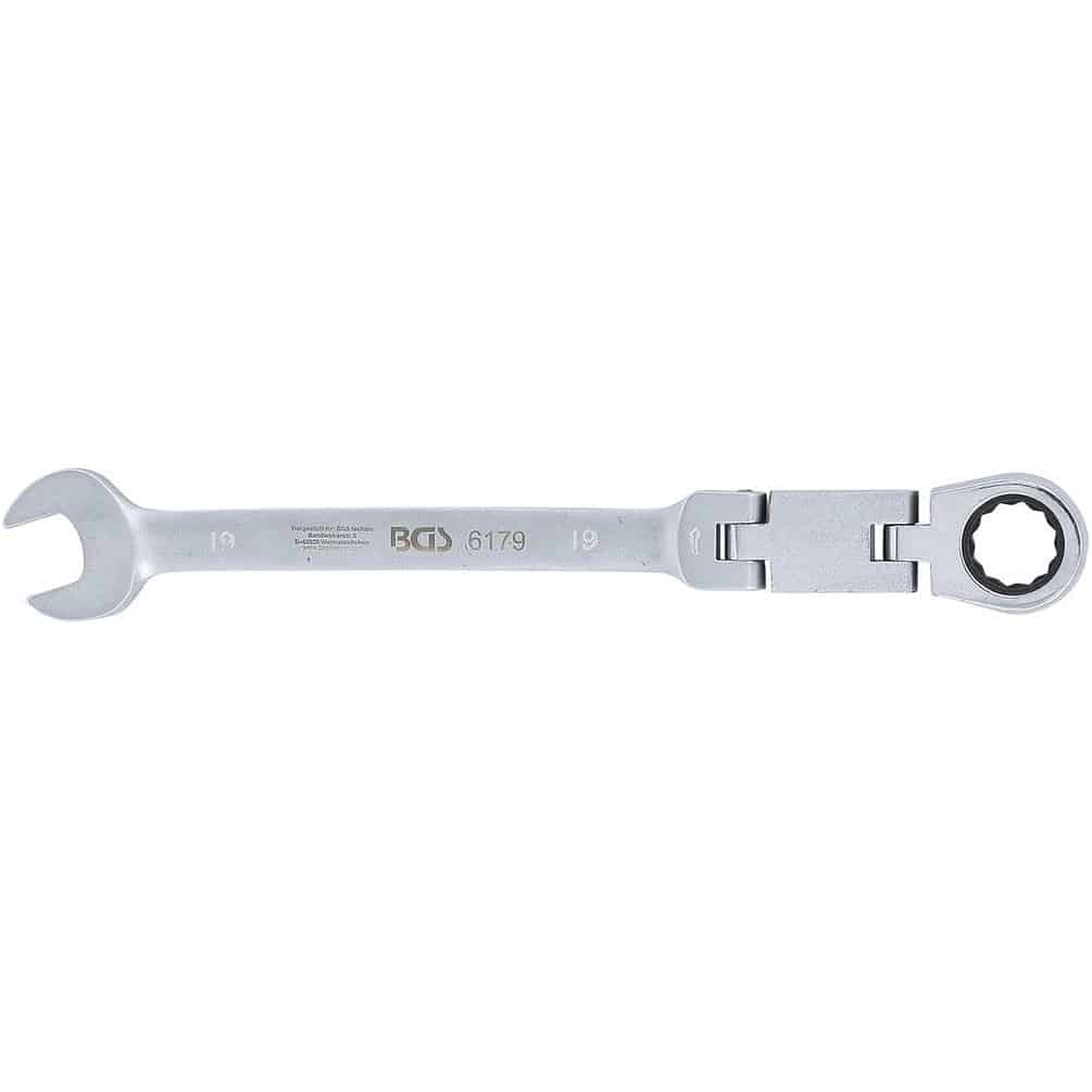 Ref. BGS-6179En savoir + sur Clé Mixte à Cliquet Pliable 19 mm - Double Articulation - Précision et Maniabilité - Acier, Zones Difficiles - D-Work