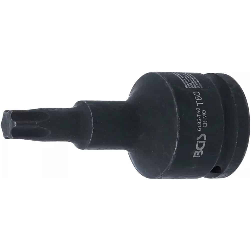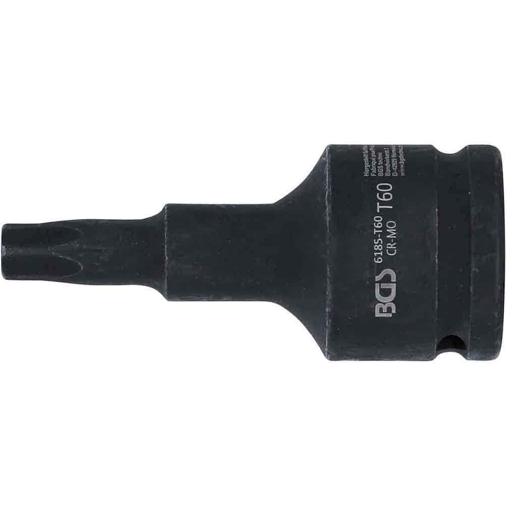 Ref. BGS-6185-T60En savoir + sur Douille à Embouts à Choc 100 mm - 20 mm (3/4), Profil Torx T60 - Résistante et Précise, Acier - D-Work