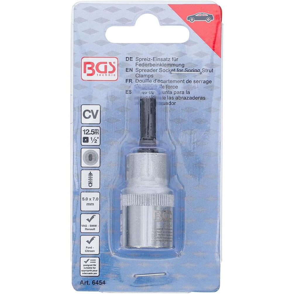 La Douille d’Écartement de Serrage de Jambe de Force 12,5 mm (1/2") de la marque BGS est un outil de précision conçu pour faciliter le serrage et l'écartement des jambes de force dans divers assemblages mécaniques. Avec ses dimensions compactes de 5 x 7 mm, elle assure une manipulation aisée et une adaptation parfaite aux besoins spécifiques des professionnels et amateurs de mécanique.Caractéristiques principales