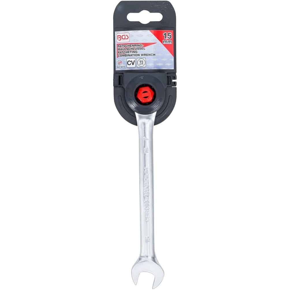 La Clé Mixte à Cliquet 15 mm de la marque BGS est un outil indispensable pour les travaux de mécanique et de bricolage. Conçue en acier robuste, elle offre une grande précision et un confort d'utilisation optimal grâce à son mécanisme à cliquet. Adaptée pour serrer ou desserrer des écrous et boulons de 15 mm, cette clé facilite les interventions rapides et efficaces.Caractéristiques principales