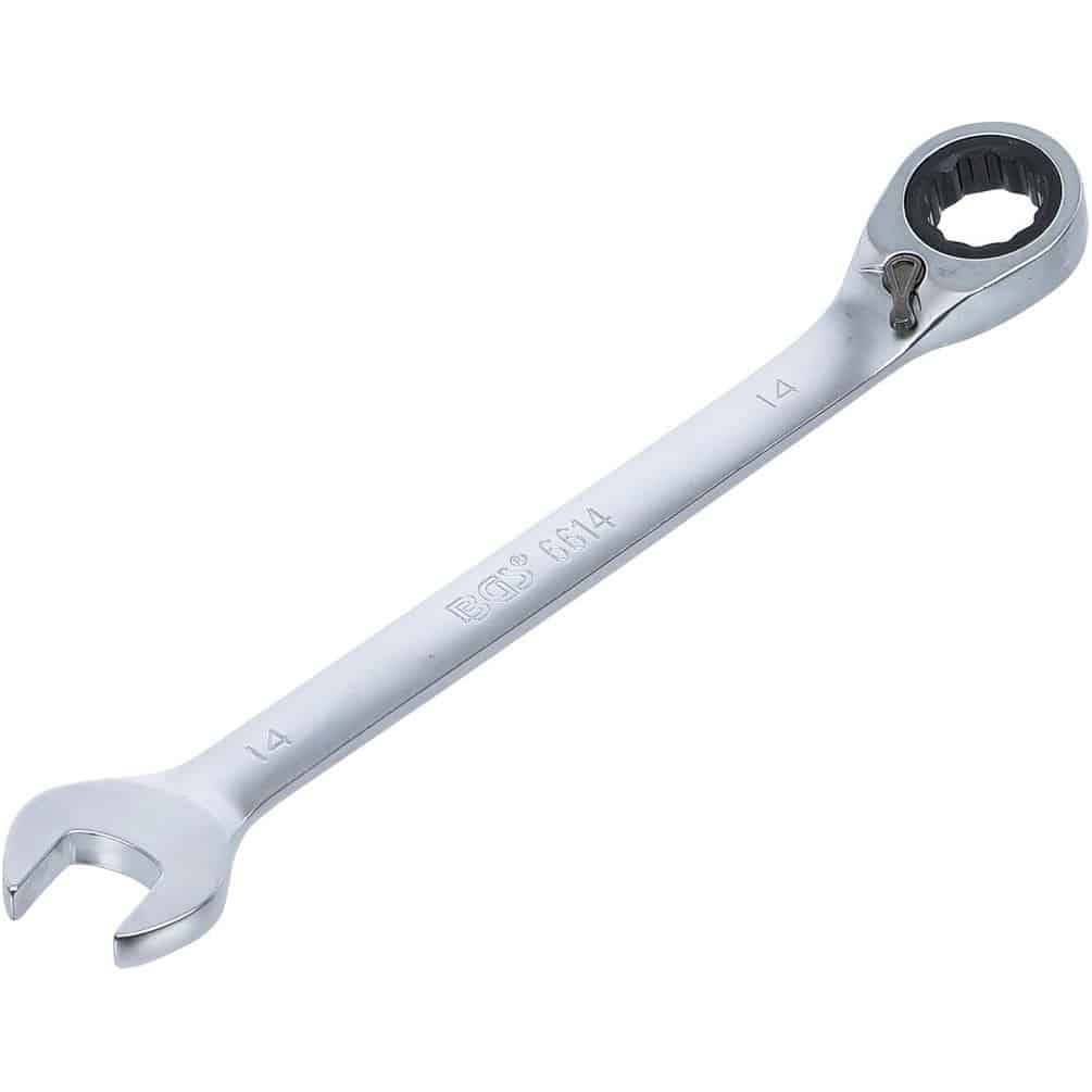 Ref. BGS-6614En savoir + sur Clé Mixte à Cliquet Réversible 14 mm - Acier, Précision et Maniabilité, Zones Difficiles - D-Work