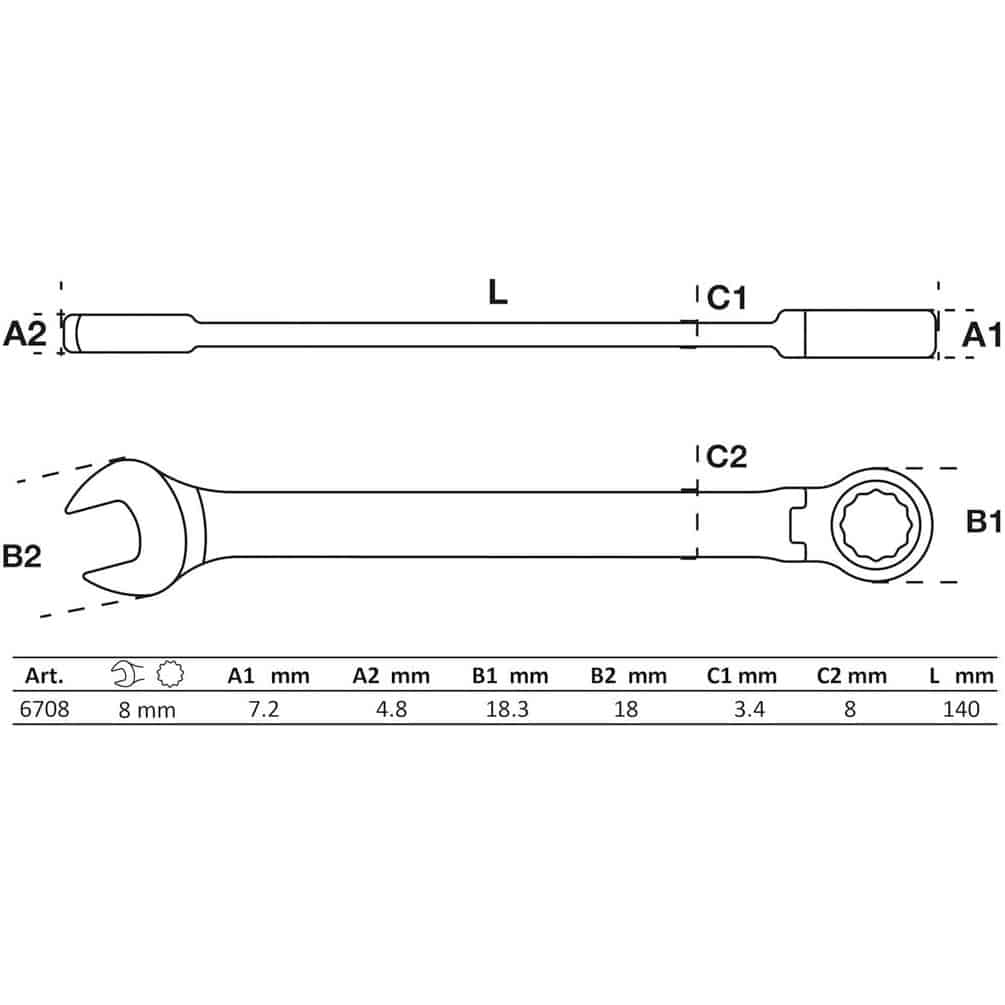 Ref. BGS-6708En savoir + sur Clé Mixte à Cliquet à Couder 8 mm - Précision et Maniabilité, Acier, Zones Difficiles - D-Work