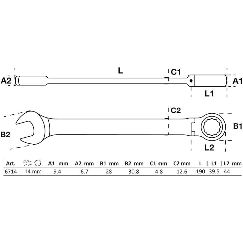 Ref. BGS-6714En savoir + sur Clé Mixte à Cliquet à Couder 14 mm Précision et Confort d Utilisation, Acier, Pour MAN, Zones Difficiles - D-Work