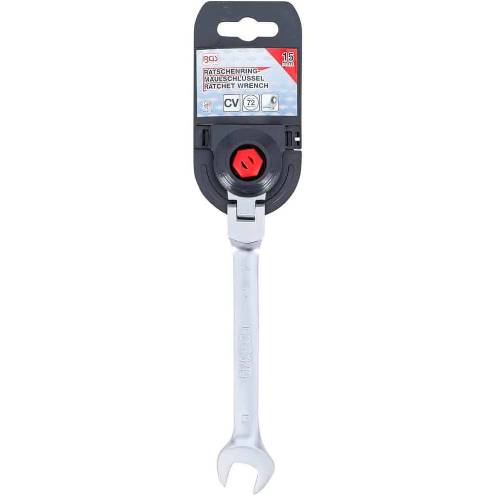 Ref. BGS-6715En savoir + sur Clé Mixte à Cliquet à Couder 15 mm - Précision et Confort d Utilisation, Acier, Zones Difficiles - D-Work