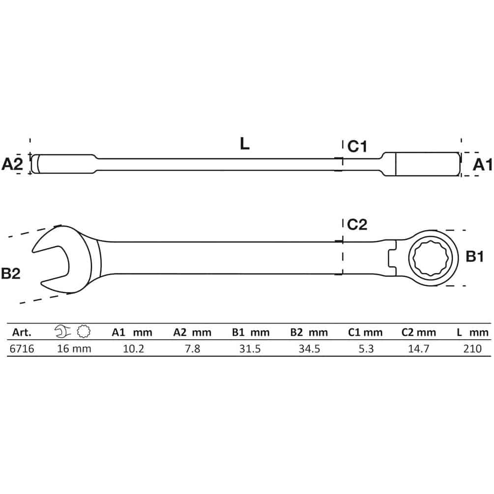 Ref. BGS-6716En savoir + sur Clé Mixte à Cliquet à Couder 16 mm - Acier, Précision et Confort d Utilisation, Zones Difficiles - D-Work