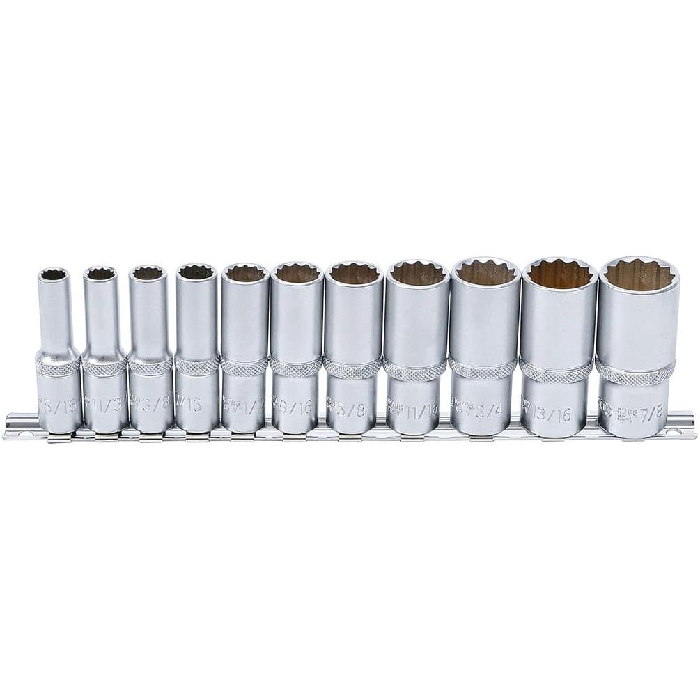 Jeu de Douilles Longues 10 mm (3/8) - 11 pcs, Douze Pans - Résistance et Précision, Acier, Zones Difficiles - D-Work
