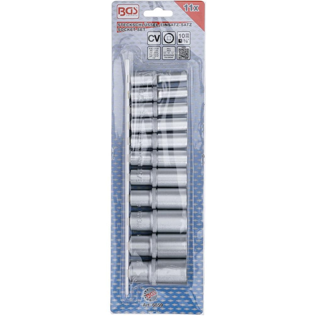 Ref. BGS-6859En savoir + sur Jeu de Douilles Longues 10 mm (3/8) - 11 pcs, Douze Pans - Résistance et Précision, Acier, Zones Difficiles - D-Work