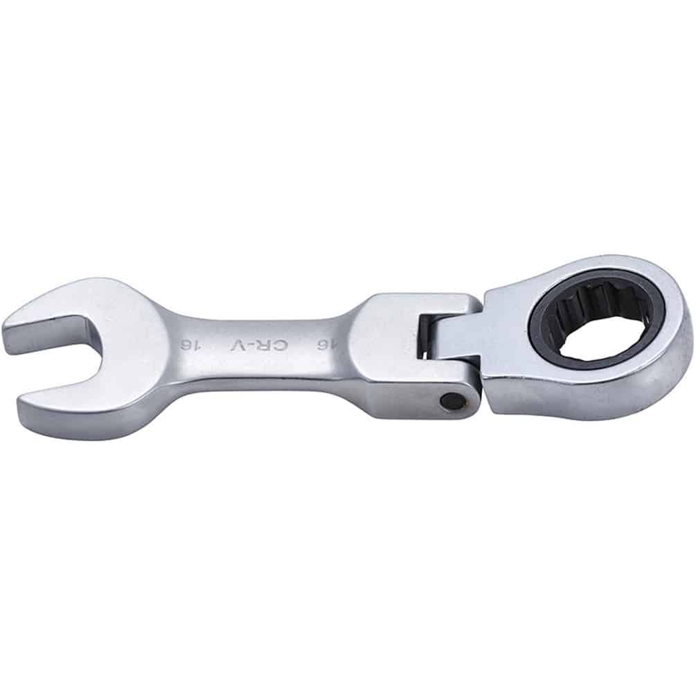 Clé Mixte à Cliquet Courte à Couder 16 mm - Acier Résistant - Maniabilité et Précision, Zones Difficiles - D-Work