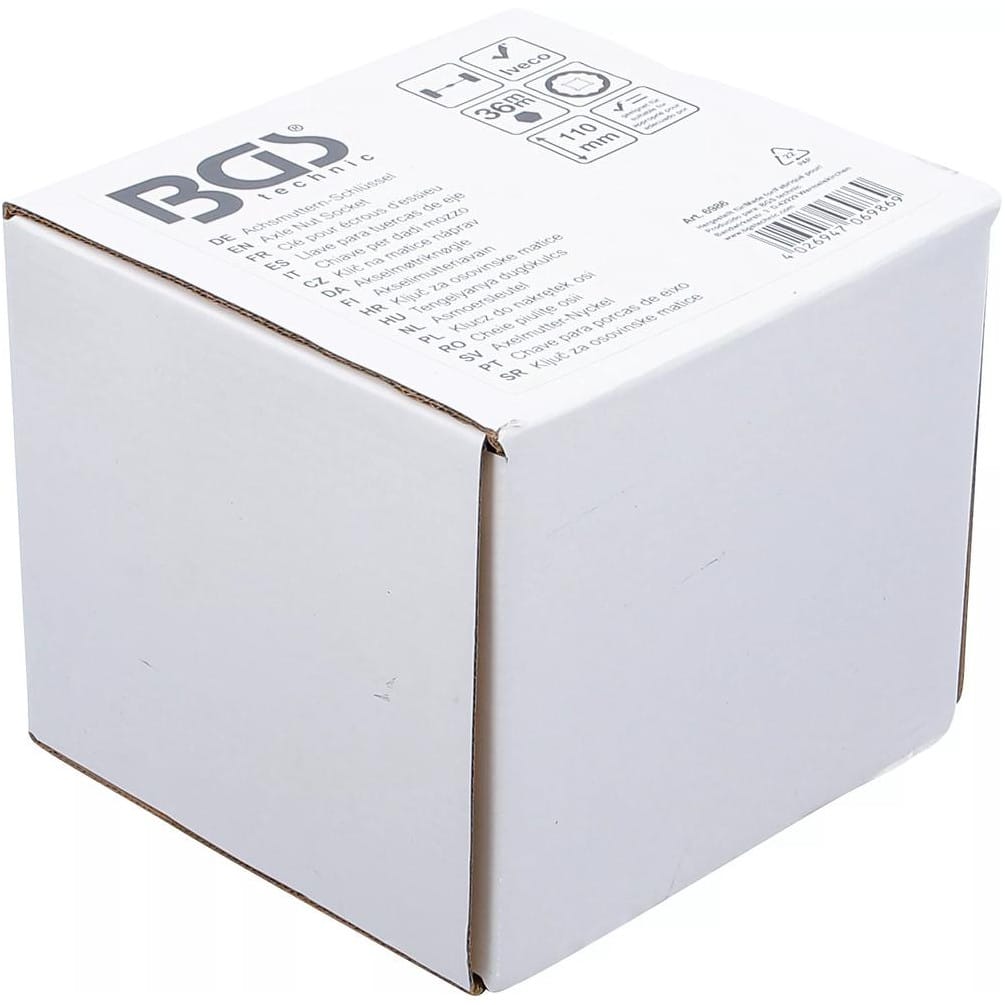 La clé pour écrous d’essieu BGS de 110 mm est un outil professionnel conçu spécialement pour le démontage et le montage des écrous d’essieu à douze pans, compatible avec les véhicules Iveco. Fabriquée pour offrir une grande précision et une robustesse optimale, cette clé facilite les opérations de maintenance et de réparation sur les essieux, garantissant un travail sûr et efficace.Caractéristiques principales