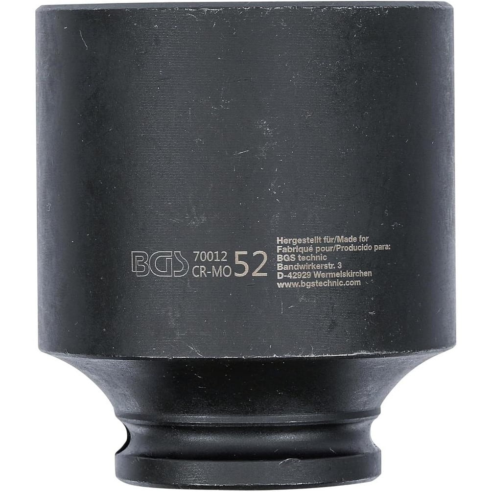 La Douille à Choc Six Pans 12,5 mm (1/2") 52 mm de la marque BGS est un outil robuste conçu pour les travaux de mécanique et d'entretien nécessitant une haute résistance et une grande précision. Fabriquée en acier de qualité, cette douille est idéale pour une utilisation avec des clés à choc, garantissant une fixation solide et une durabilité accrue.Caractéristiques principales
