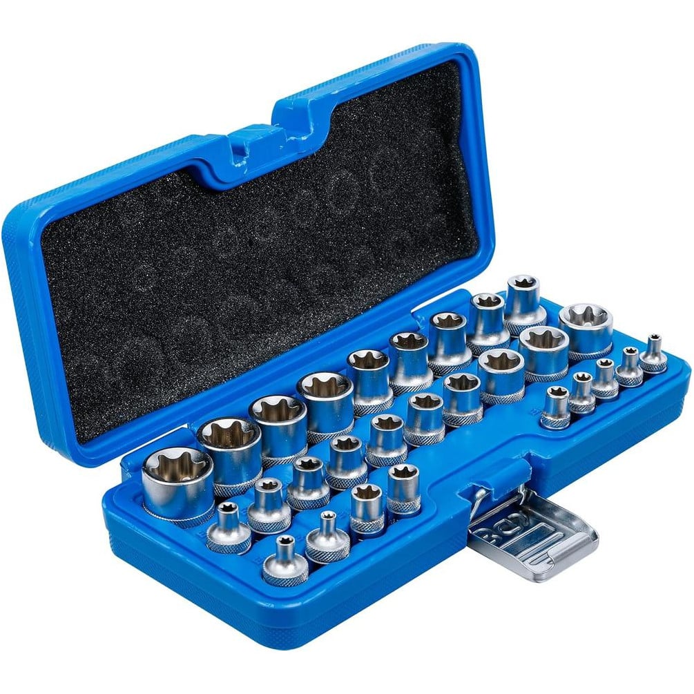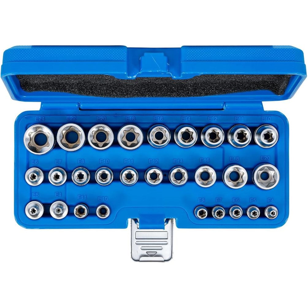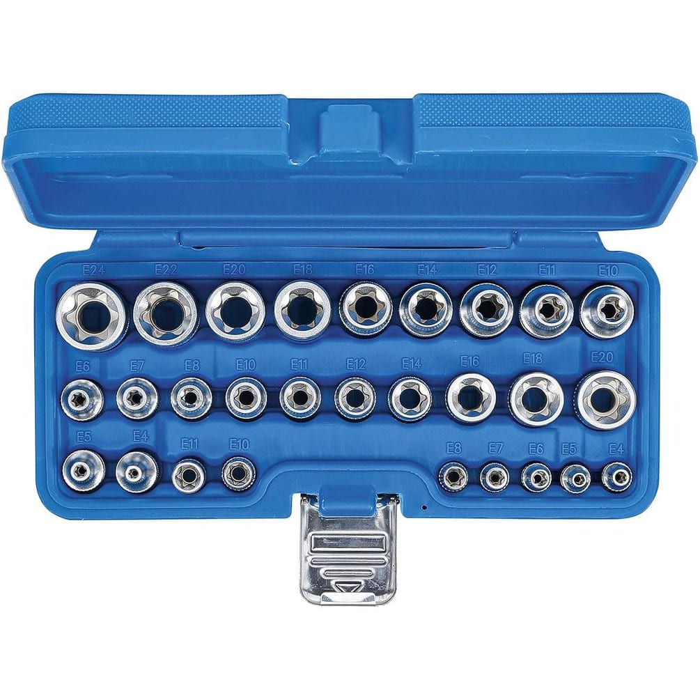 Le jeu de douilles profil E de BGS est un ensemble complet de 28 pièces conçu pour répondre aux besoins des professionnels et des amateurs de mécanique. Adapté aux profils E4 à E24, ce kit offre une grande polyvalence pour le démontage et le montage de vis et écrous spécifiques. Avec des douilles en tailles 6,3 mm (1/4") et 12,5 mm (1/2"), il garantit une prise précise et sécurisée.Caractéristiques principales