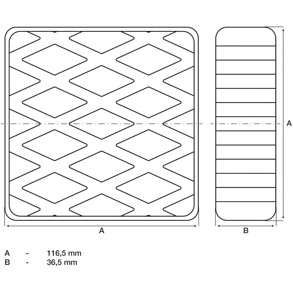 Tampon en Caoutchouc pour Pont Élévateur 116,5 x 116,5 x 36,5 mm - Résistant et Antidérapant - D-Work
