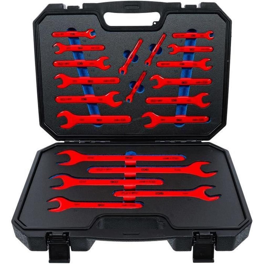 La Clé à Fourche VDE 32 mm de la marque BGS est un outil professionnel conçu pour les travaux électriques nécessitant une isolation renforcée. Sa certification VDE garantit une protection optimale contre les chocs électriques jusqu'à 1000 volts, assurant ainsi la sécurité de l'utilisateur lors de manipulations sur des installations sous tension.Caractéristiques principales