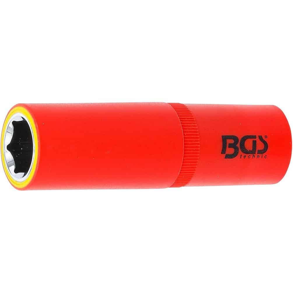La Douille pour Clé VDE 1/2" 16 mm de la marque BGS est un outil professionnel conçu pour les travaux électriques nécessitant une sécurité optimale. Grâce à sa certification VDE, elle garantit une isolation efficace contre les chocs électriques jusqu'à 1000 V, assurant ainsi la protection de l'utilisateur. Sa conception six pans permet une prise ferme et précise sur les écrous et boulons, facilitant les opérations de serrage et desserrage.Caractéristiques principales