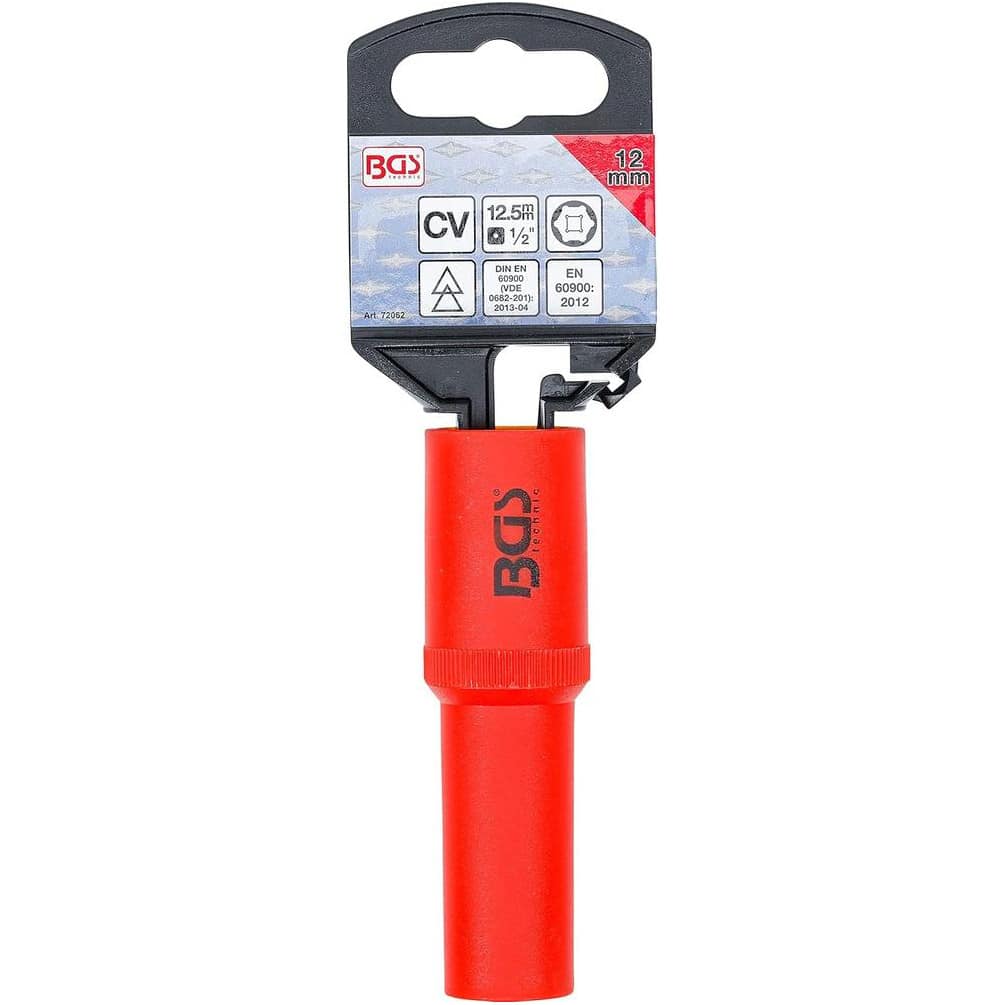 La Douille pour Clé VDE Six Pans 12,5 mm (1/2") - 12 mm de la marque BGS est un outil professionnel conçu pour les travaux électriques nécessitant une sécurité optimale. Grâce à sa certification VDE, elle garantit une isolation électrique fiable jusqu'à 1000 V, assurant la protection de l'utilisateur lors de manipulations sous tension. Sa conception six pans permet une prise ferme et précise sur les écrous et boulons, facilitant ainsi les opérations de serrage et desserrage.Caractéristiques principales