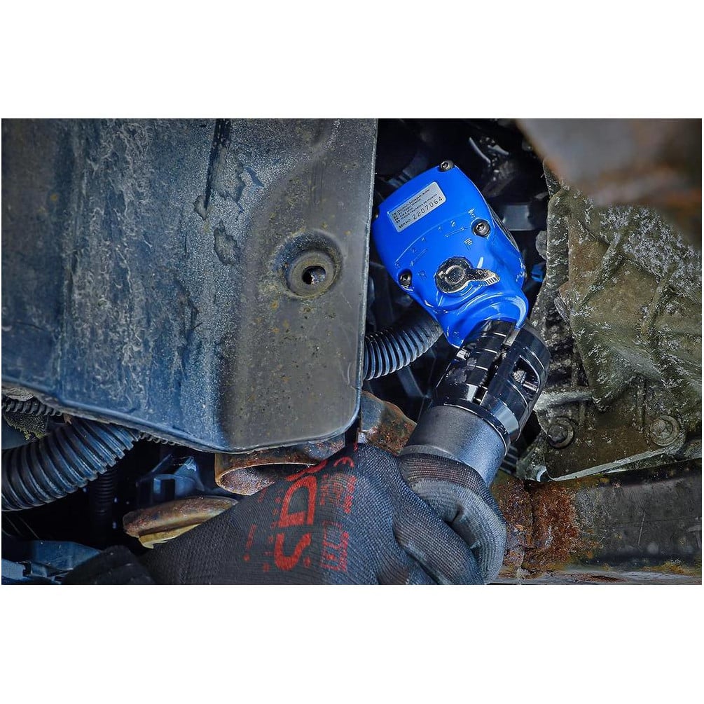 Idéale pour les travaux de mécanique automobile, maintenance industrielle et bricolage, cette clé à choc s'utilise avec des douilles adaptées de 12,5 mm (1/2"). Pour une utilisation optimale, positionnez la tête selon l'angle souhaité et appliquez la puissance nécessaire en fonction de la fixation à serrer ou desserrer.