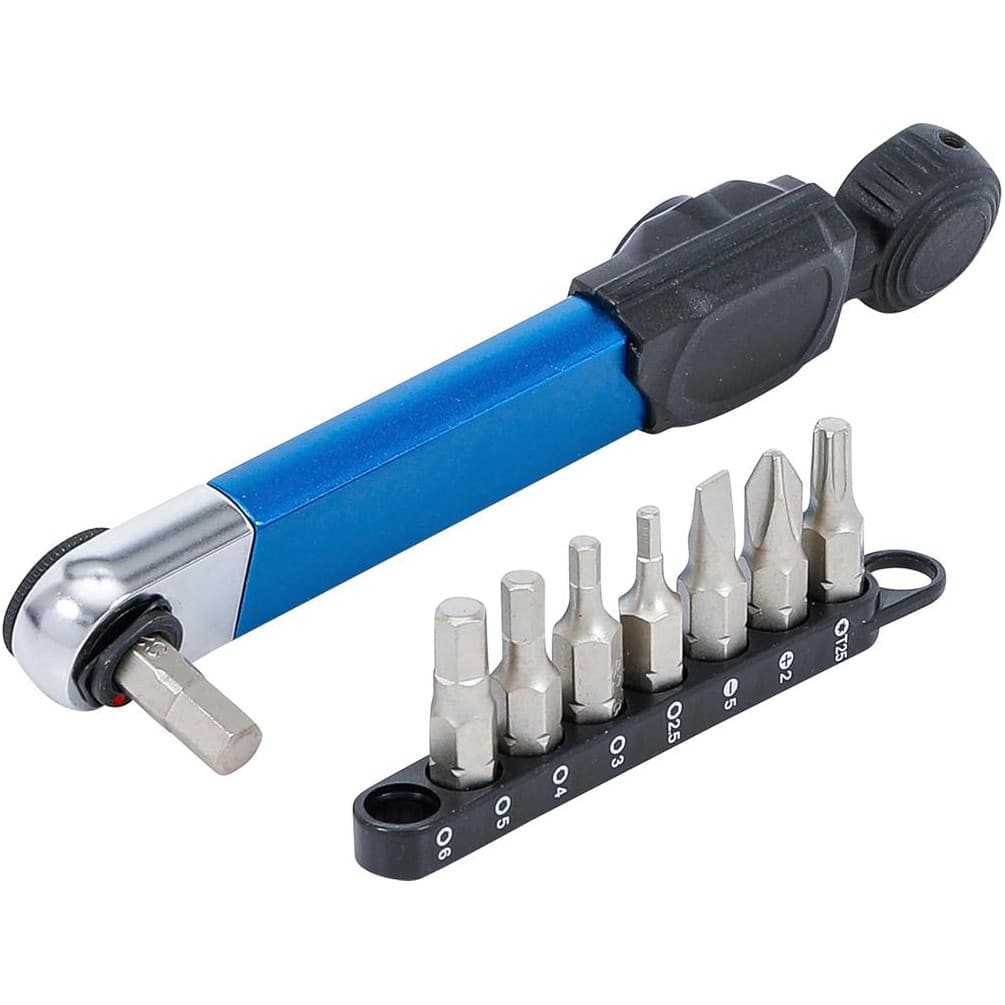 La clé dynamométrique BGS avec six pans femelle 6,3 mm (1/4") est un outil de précision conçu pour appliquer un couple de serrage compris entre 2 et 10 Nm. Ce modèle est livré avec un jeu complet de 9 embouts, offrant une grande polyvalence pour divers travaux de serrage et d'assemblage. Idéale pour les professionnels et les amateurs exigeants, cette clé garantit un serrage précis et sécurisé, évitant les sur-serrages et les dommages aux pièces.Caractéristiques principales