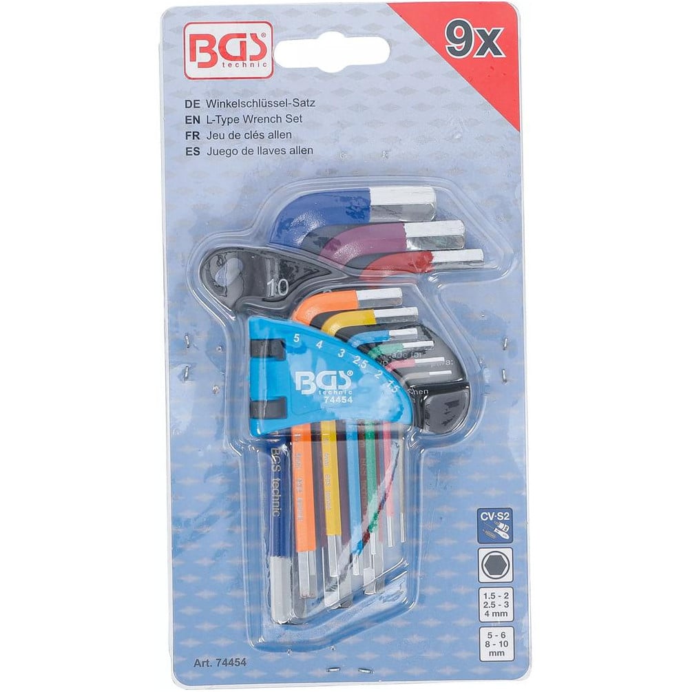 Ref. BGS-74454En savoir + sur Jeu de Clés Allen Courtes 9 pcs 1,5-10 mm - Six Pans Femelle Multicolore - Précision et Polyvalence - D-Work