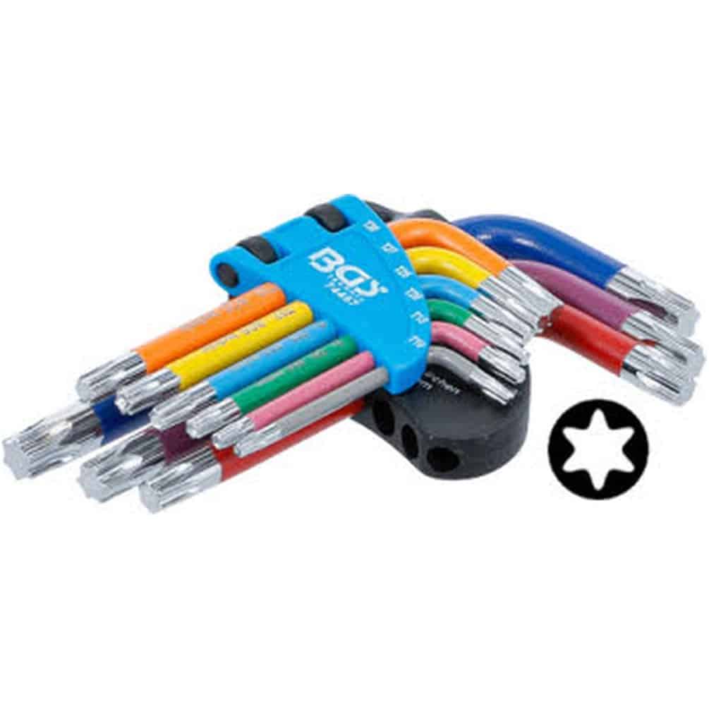 Ref. BGS-74460En savoir + sur Jeu de Clés Allen Courtes Multicolores - 9 pcs T10 à T50 Profil Torx - Précision et Confort d Utilisation - D-Work