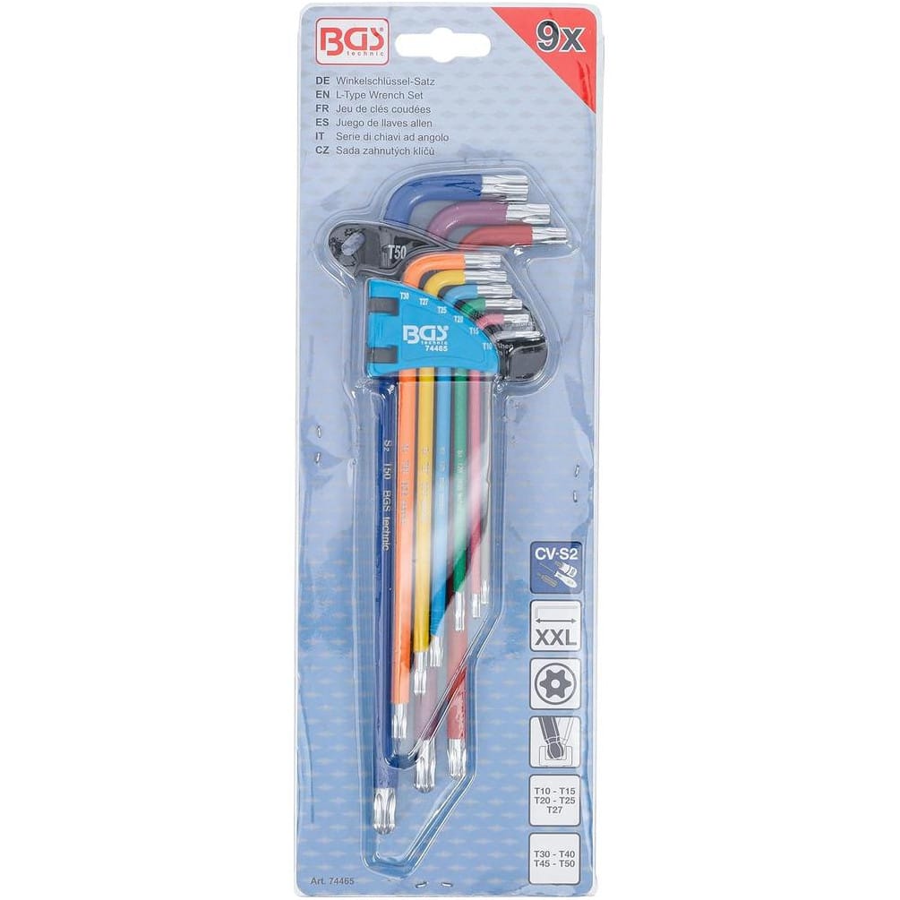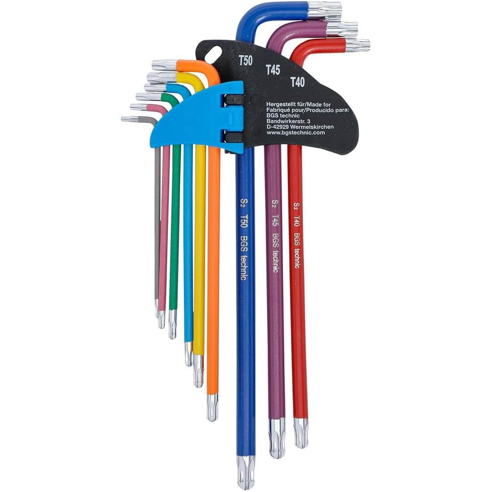 Ref. BGS-74465En savoir + sur Jeu de Clés Allen Multicolore - 9 pcs Extra Longues T10-T50 - Profil T Torx avec Perçage et Tête Sphérique - Précision - D-Work