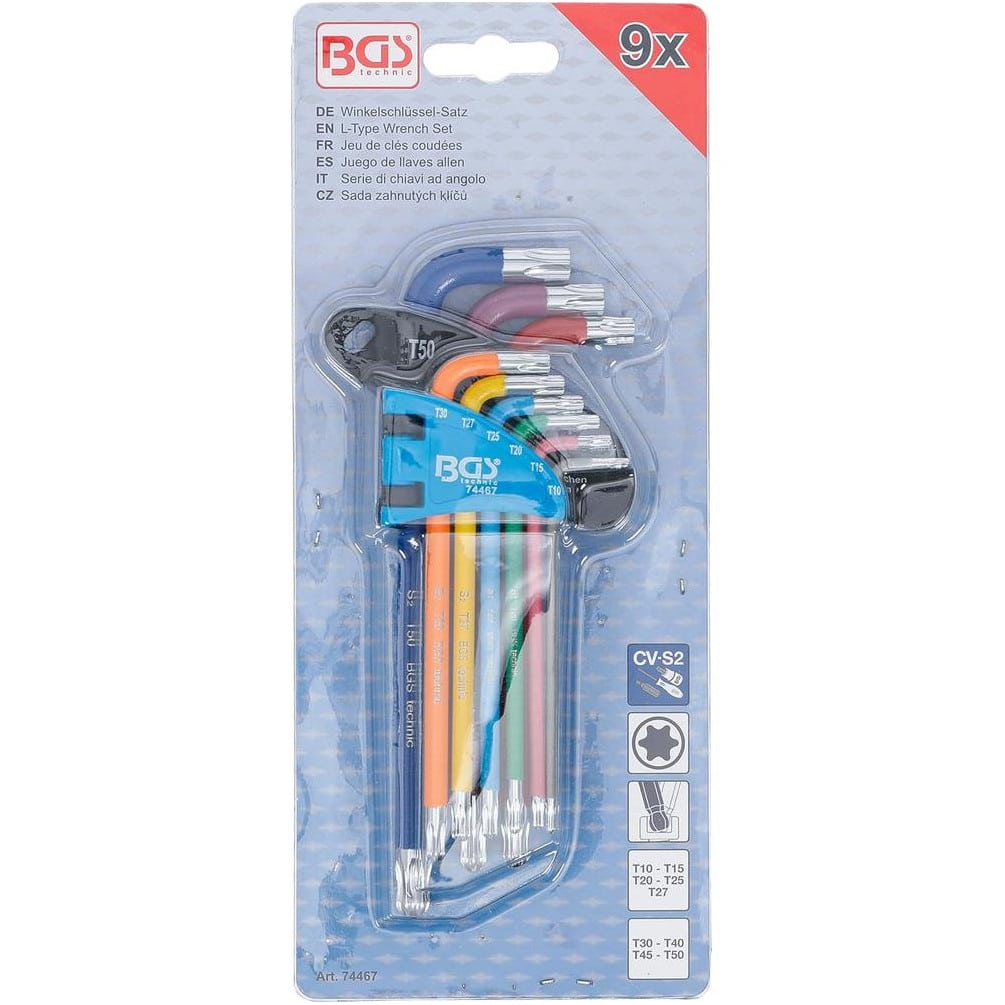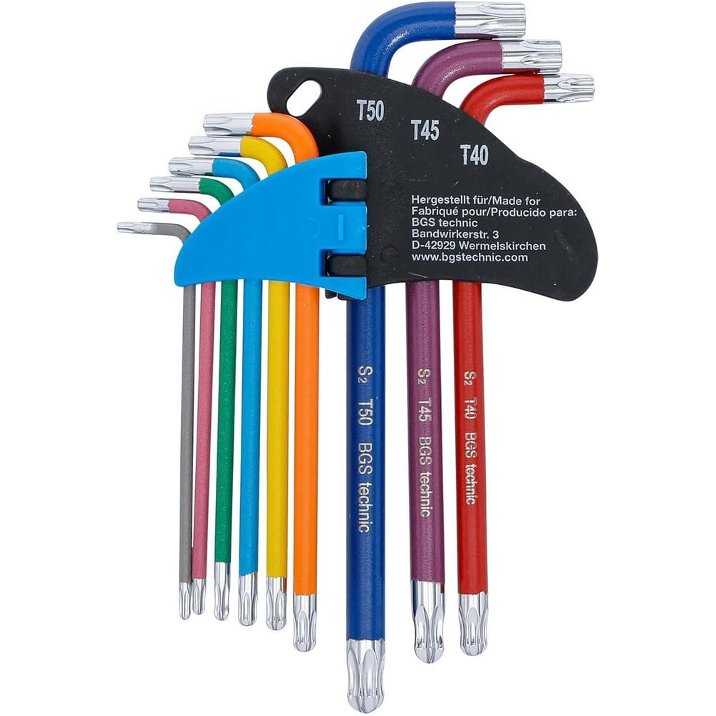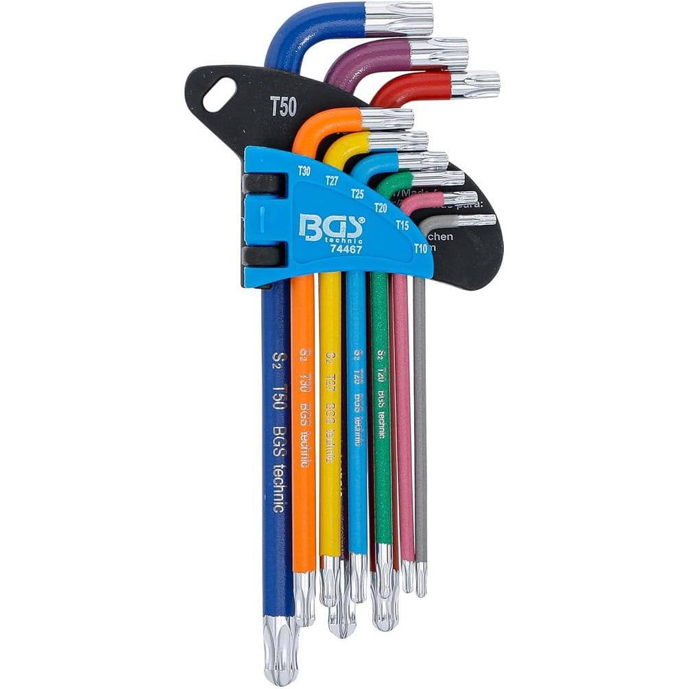 Ref. BGS-74467En savoir + sur Jeu de Clés Allen Profil T Multicolore 9 pcs T10-T50 - Tête Sphérique - Précision et Confort d Utilisation - D-Work