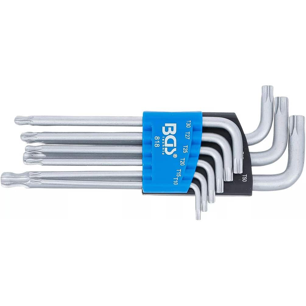 Ce jeu de clés Allen Profil T multicolore comprend 9 pièces allant des tailles T10 à T50, équipées de têtes sphériques pour un accès facilité aux vis Torx dans des angles difficiles. Fabriqué par BGS, ce set est idéal pour les professionnels et les amateurs de bricolage recherchant précision et confort d'utilisation.Caractéristiques principales