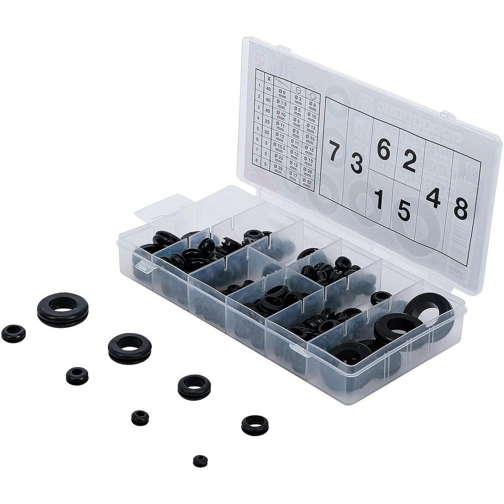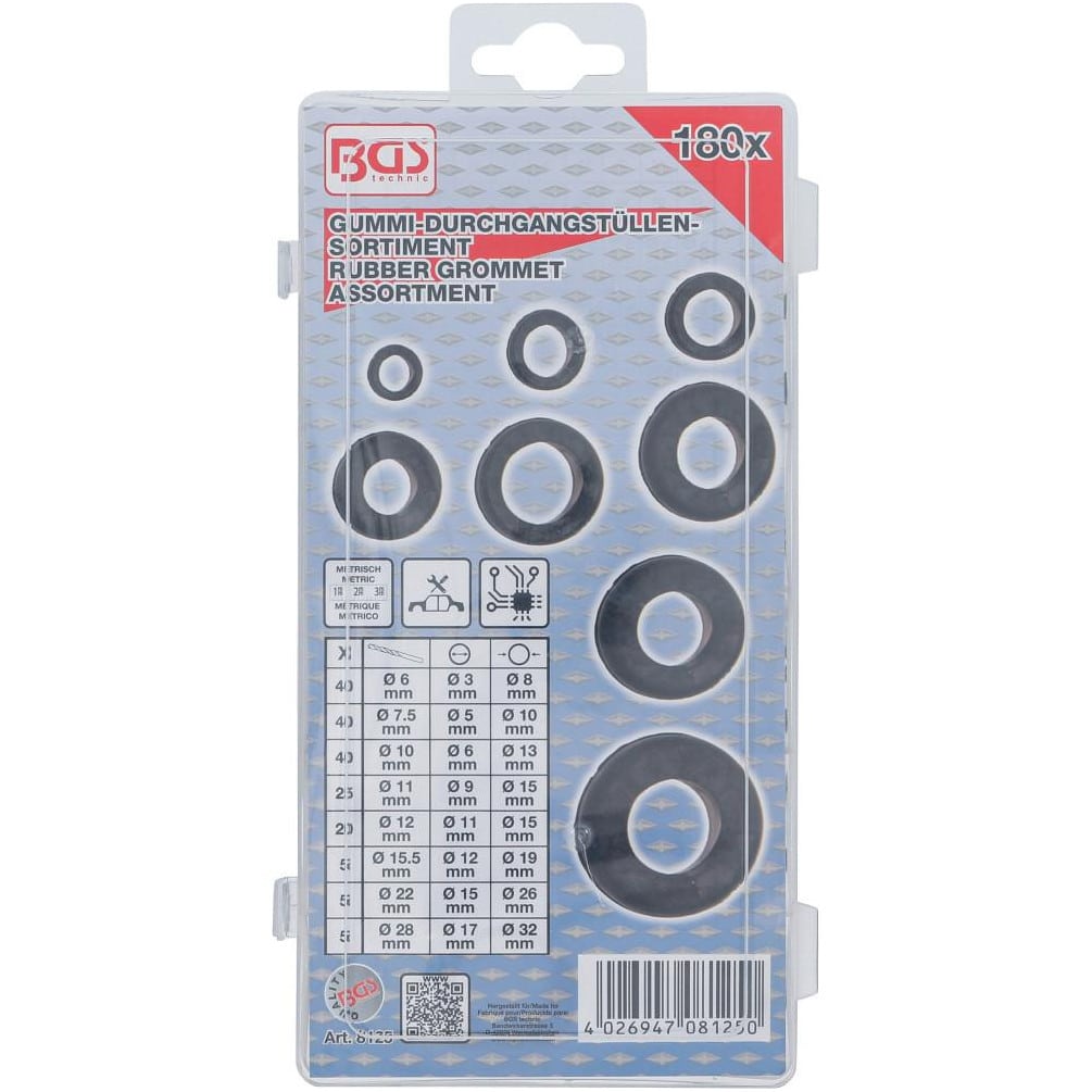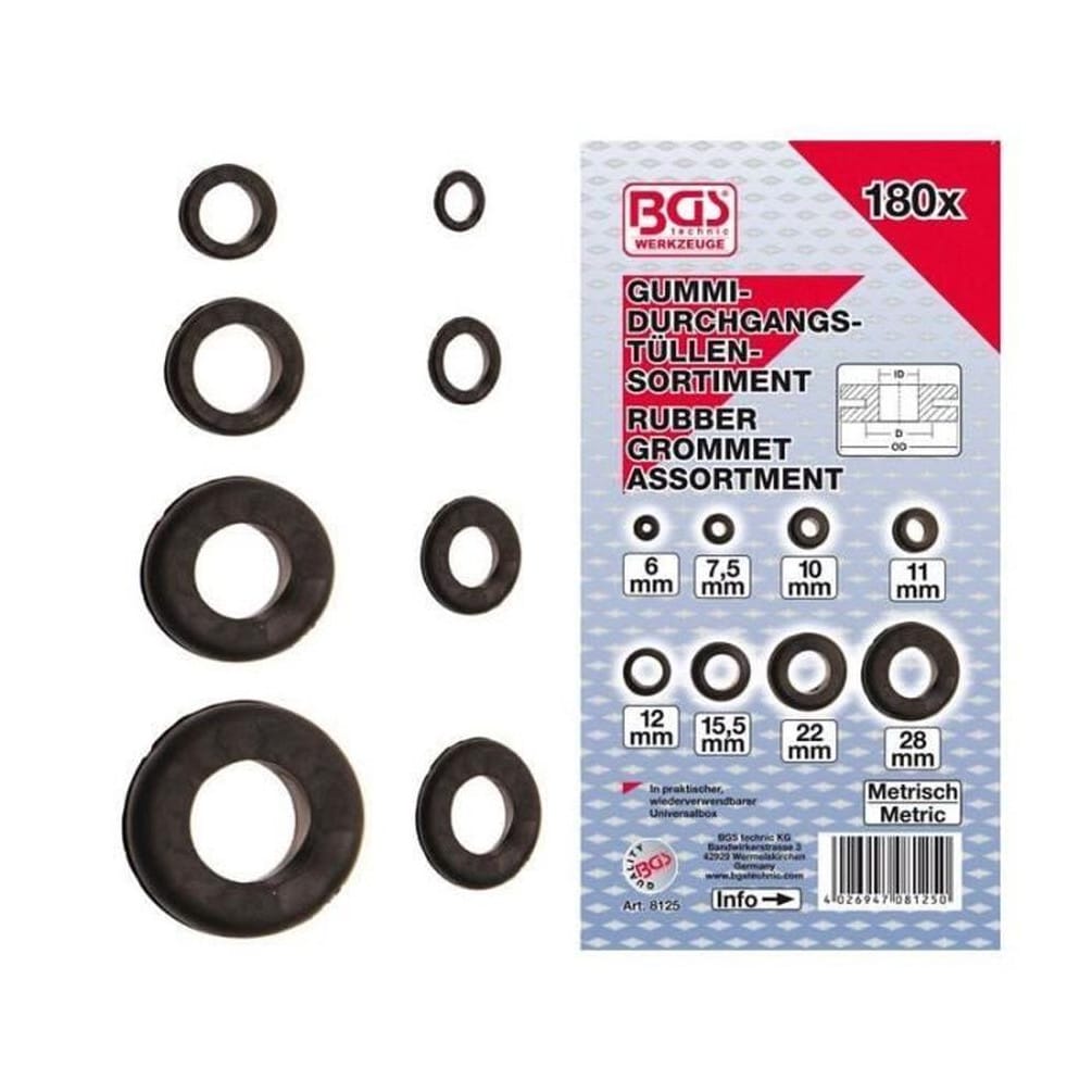 Ref. BGS-8125En savoir + sur Assortiment de Passe-Fil Caoutchouc 180 pcs - Métrique - Protection et Isolation des Câbles - D-Work