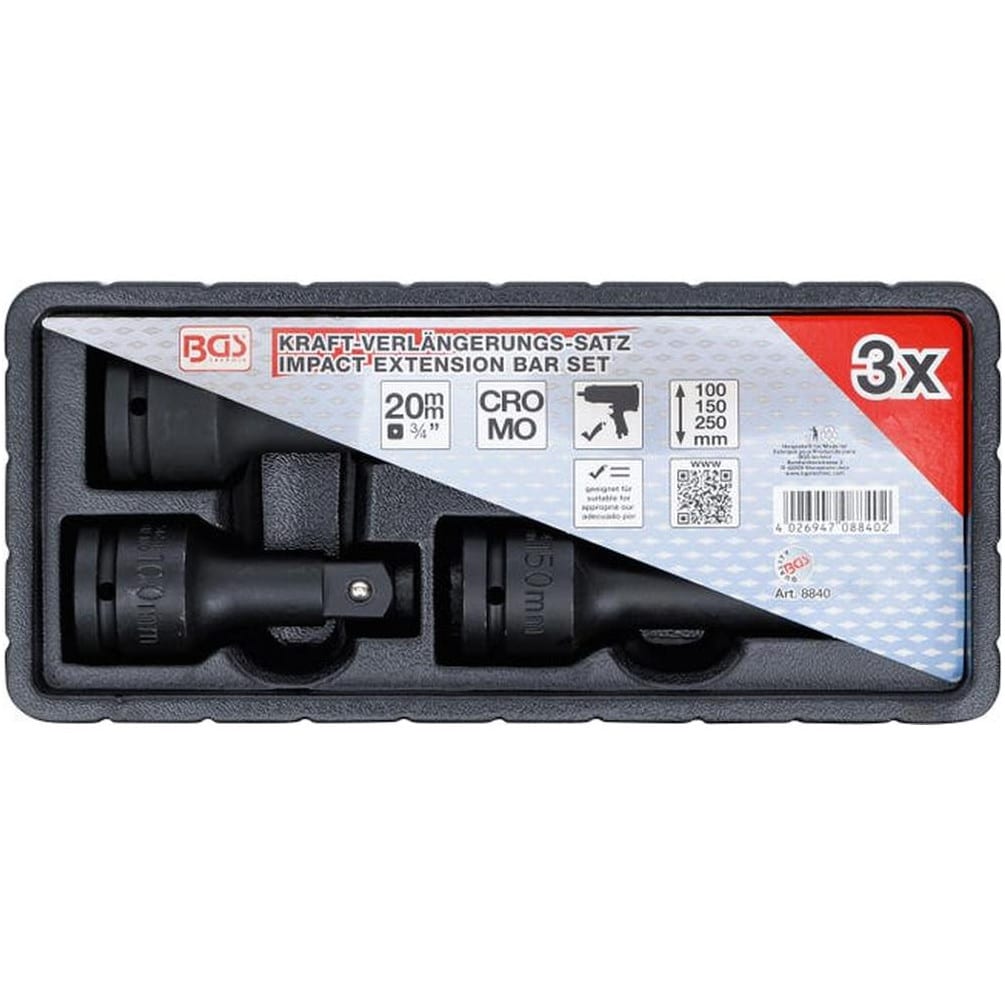 Ref. BGS-8840En savoir + sur Jeu de Rallonges à Choc 20 mm (3/4) - 3 pcs - Acier Résistant et Pratique, Zones Difficiles - D-Work