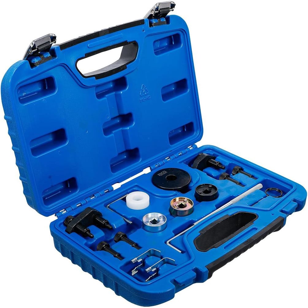 Ce coffret de calage BGS est spécialement conçu pour les moteurs VAG 1.8 et 2.0L FSI / TFSI. Il permet un calage précis et fiable des arbres à cames et de la distribution, garantissant ainsi un entretien et une réparation optimaux de votre moteur. Fabriqué avec des matériaux robustes, ce coffret assure une longue durée de vie et une utilisation sécurisée.