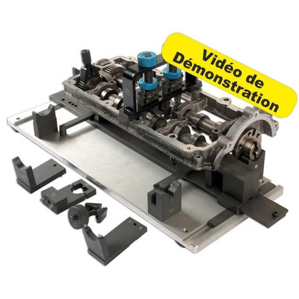 Utilisez ce coffret pour caler précisément l'arbre à cames lors de l'entretien ou de la réparation des moteurs VAG 1.0. Suivez les instructions spécifiques du moteur pour positionner correctement les outils du coffret et garantir un calage optimal.