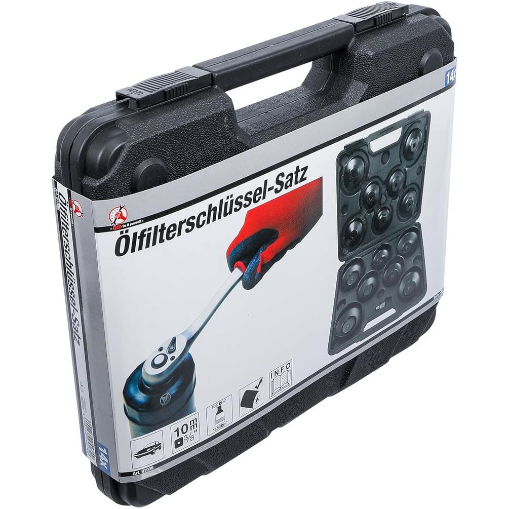 Ce jeu de douilles à filtres à huile de 14 pièces, avec une douille principale de 10 mm (3/8"), est un outil indispensable pour les professionnels et amateurs de mécanique. Fabriqué par BGS, il permet de démonter et remonter facilement les filtres à huile, garantissant un entretien rapide et efficace de votre véhicule.Caractéristiques principales