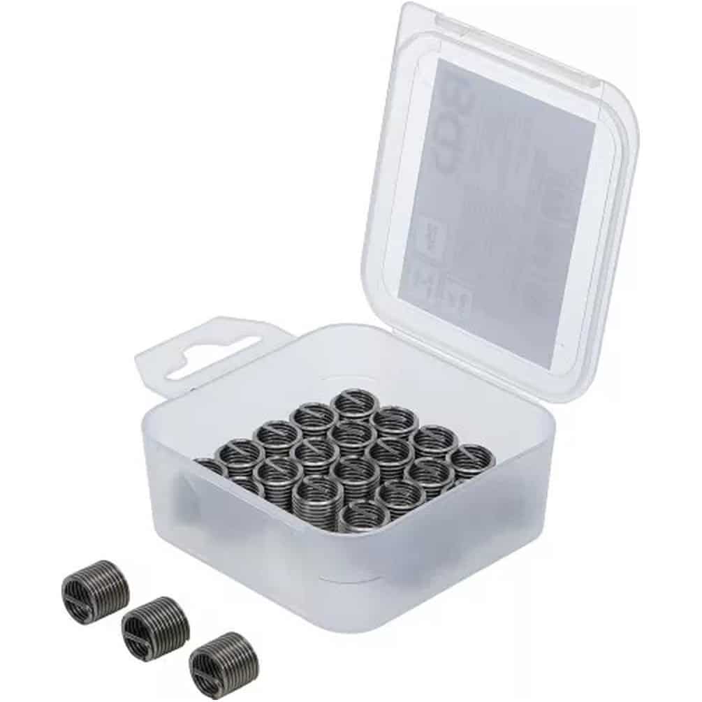 Ces inserts taraudés sont utilisés pour renforcer les filetages dans des matériaux tendres ou usés, permettant une fixation solide de vis ou boulons. Ils sont adaptés pour la réparation ou la fabrication d'assemblages mécaniques. Pour une installation optimale, il est recommandé d'utiliser les outils adaptés et de suivre les instructions du fabricant.