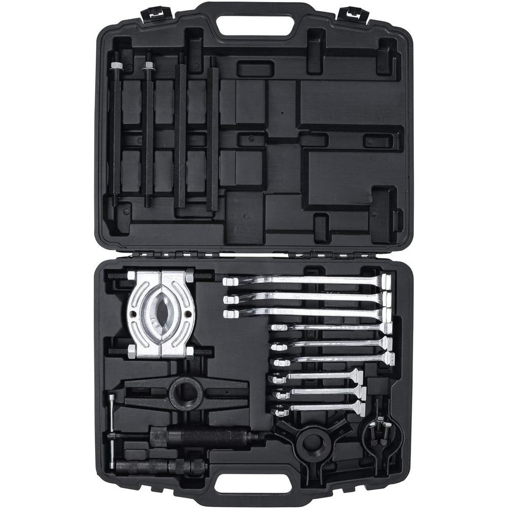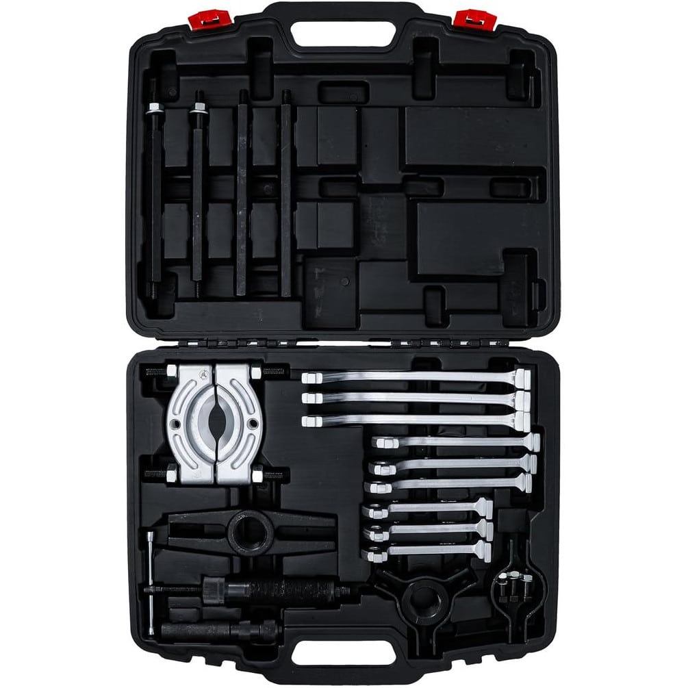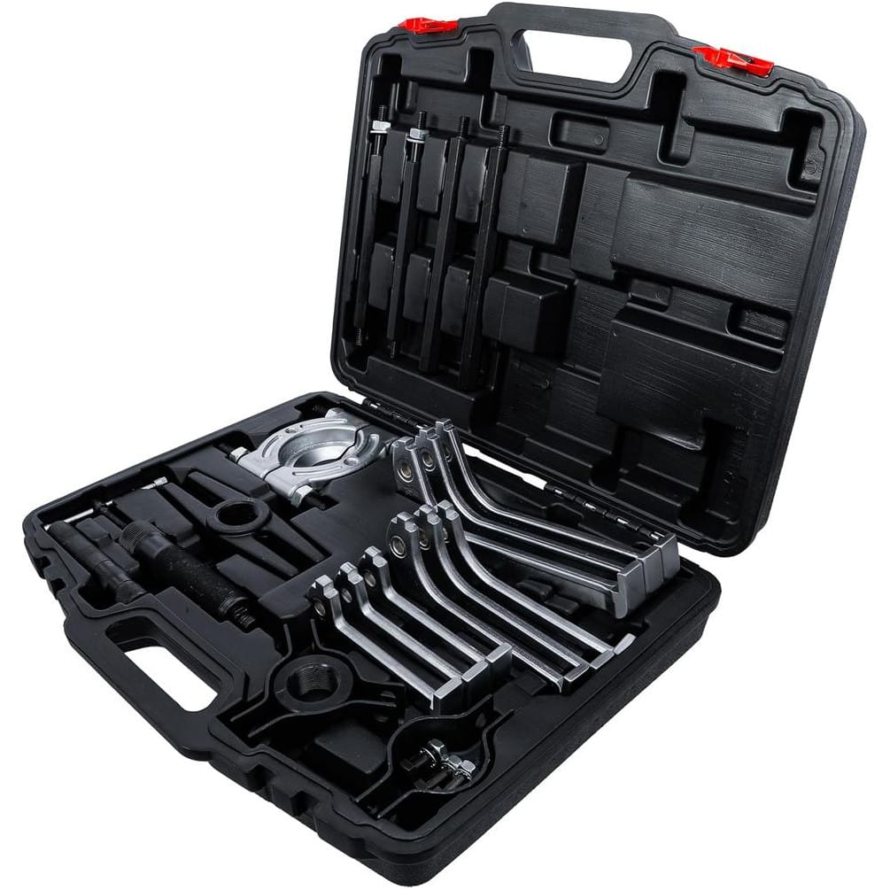 Ce jeu d'extracteurs s'utilise principalement pour retirer des roulements, pignons, poulies ou autres pièces mécaniques serrées. Il suffit de positionner l'extracteur sur la pièce à retirer, d'actionner le système hydraulique pour appliquer la force nécessaire, puis de retirer la pièce en toute sécurité. Convient aux professionnels et amateurs avertis.
