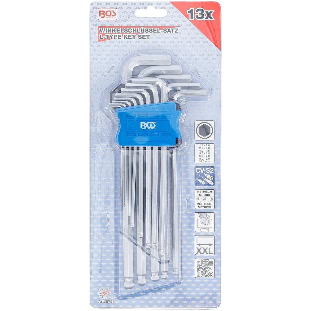 Ref. BGS-9799En savoir + sur Jeu de Clés Allen Extra Longues 1,5-10 mm - 13 pcs, Tête Sphérique - Précision et Accessibilité - D-Work