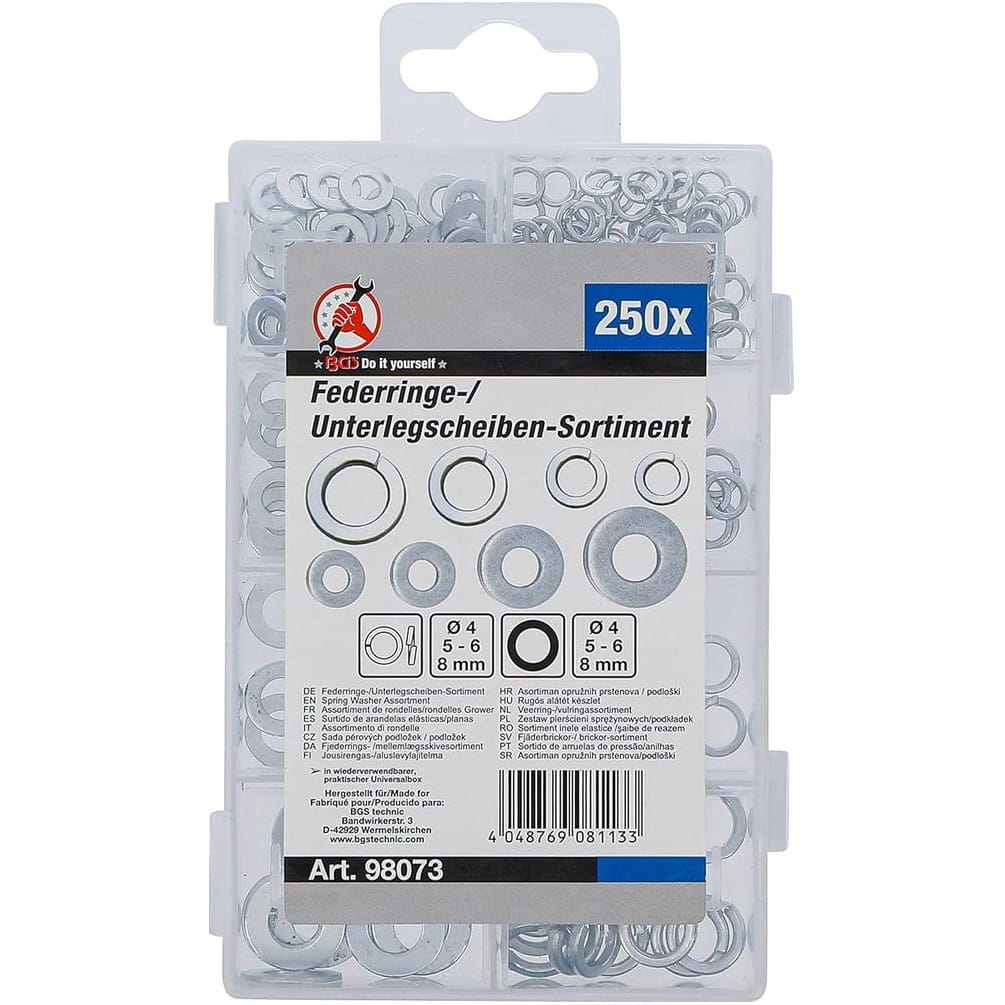 Ref. BGS-98073En savoir + sur Assortiment de Rondelles Grower D.4-8 mm - 250 pcs - Acier, Résistantes et Antivibrations - D-Work