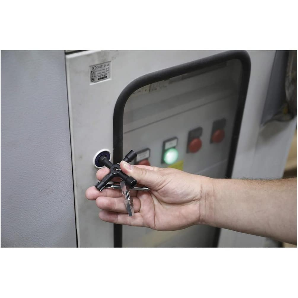 Clé Universelle pour Armoire Technique - 16,1 x 8,5 x 2,1 cm - Acier Résistant - Outil Polyvalent et Pratique - D-Work