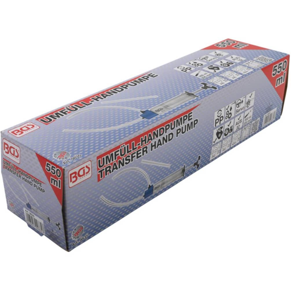 La Pompe de Transfert à Main 550 ml de la marque BGS est un outil pratique et efficace conçu pour faciliter le transfert de liquides en toute sécurité. Sa capacité de 550 ml permet un usage adapté pour des petites quantités, idéal pour les ateliers, garages ou usages domestiques. Fabriquée en plastique résistant, cette pompe assure durabilité et facilité d'utilisation.
