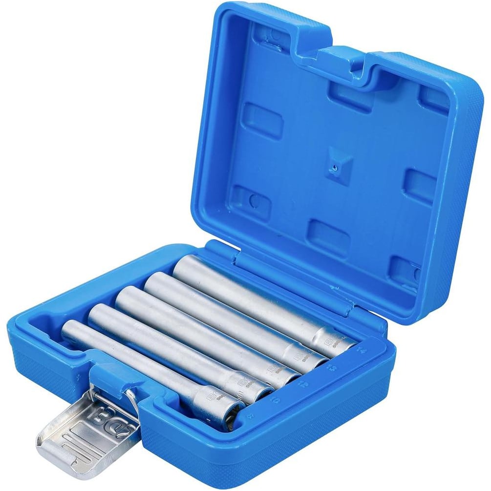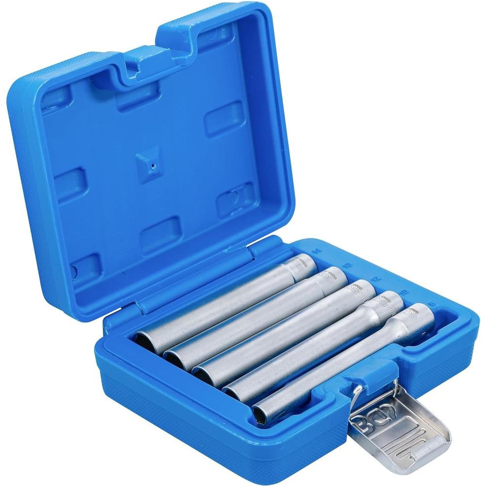 Le jeu de 5 douilles hexagonales extra longues BGS, avec transmission par carré femelle 10 mm (3/8"), couvre les tailles de 8 à 14 mm. Conçu pour les professionnels et les amateurs exigeants, ce set permet d'accéder facilement aux écrous et boulons difficiles d'accès grâce à sa longueur accrue.