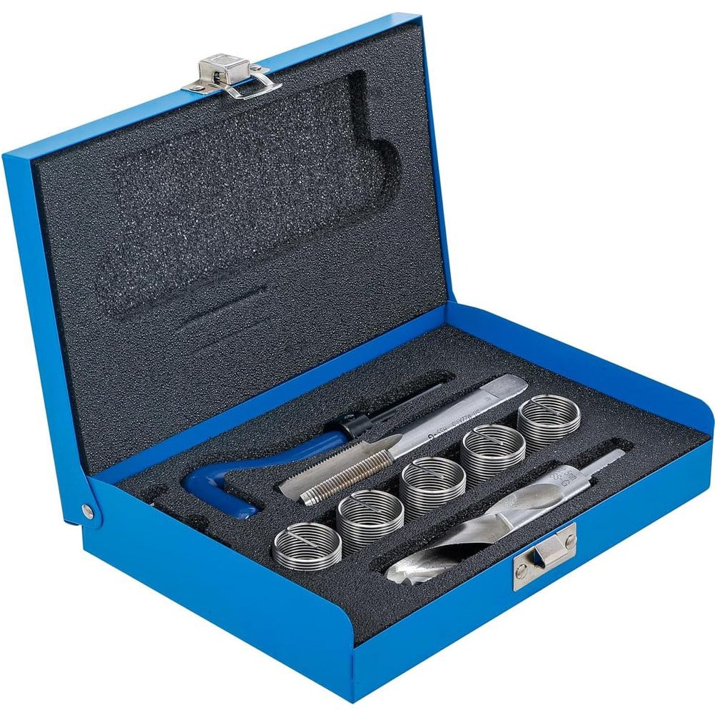 Ce kit s'utilise pour restaurer les filetages M22 x 1,5 sur divers équipements mécaniques. Il convient de suivre les instructions fournies pour démonter la pièce endommagée, nettoyer le filetage, puis appliquer les outils du kit pour recréer un filetage neuf et fonctionnel.