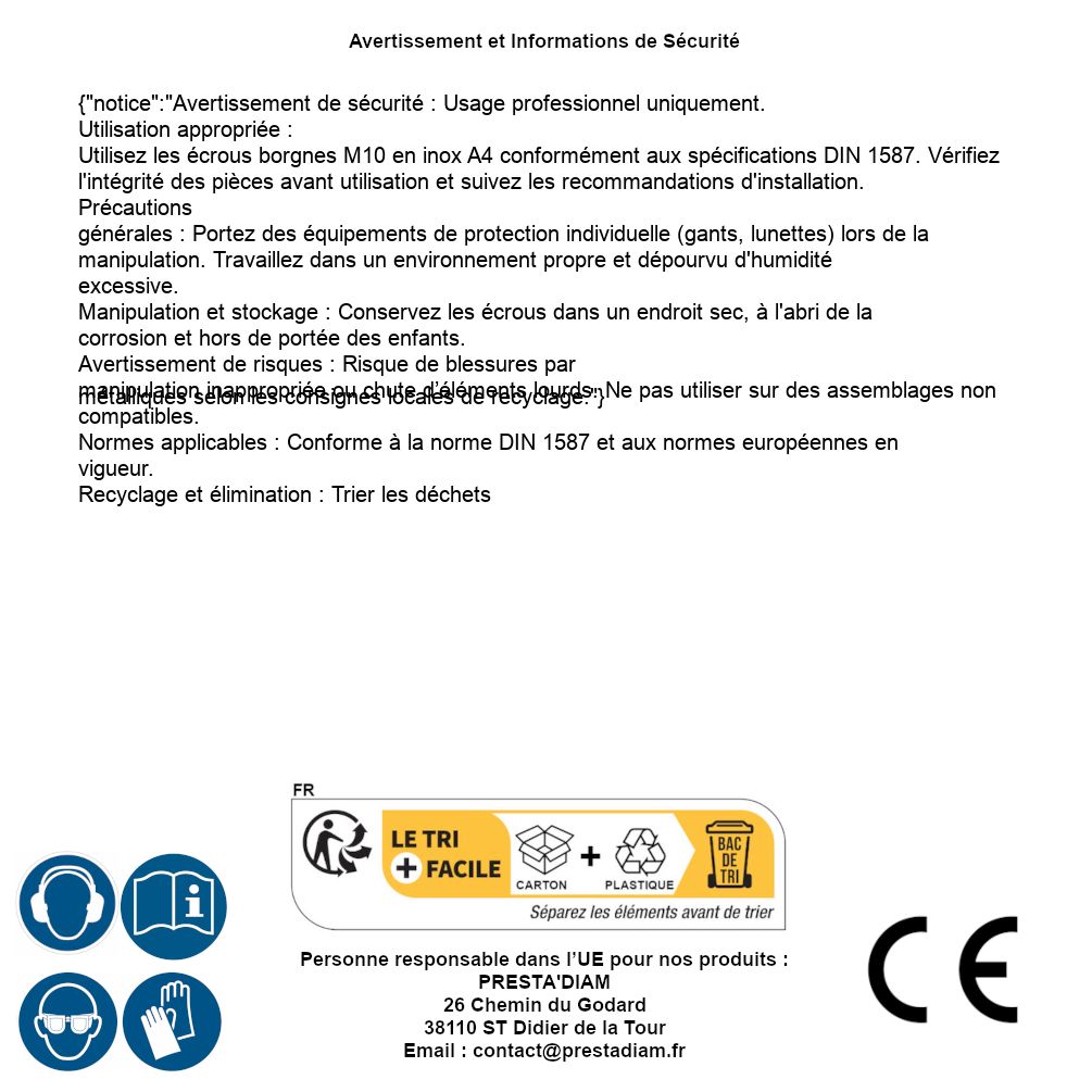 | AVERTISSEMENT et SECURITE | Identification de la personne responsable dans l’UE : Nom : PRESTA'DIAM. Adresse : 26 Chemin du Godard, 38110 ST Didier de la Tour (France). Email : contact@prestadiam.fr. |