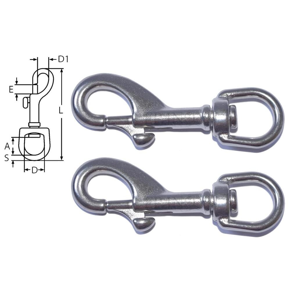 5 Mousquetons à Targette avec Emerillon 64 mm - Inox A4 - D-Work