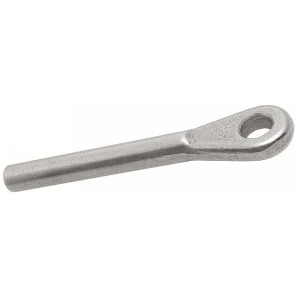 Ce type d'embout est utilisé pour créer des points d'ancrage solides sur des câbles ou tiges filetées. Il est recommandé de l'installer avec un outil de sertissage adapté pour garantir une fixation optimale et sécurisée.