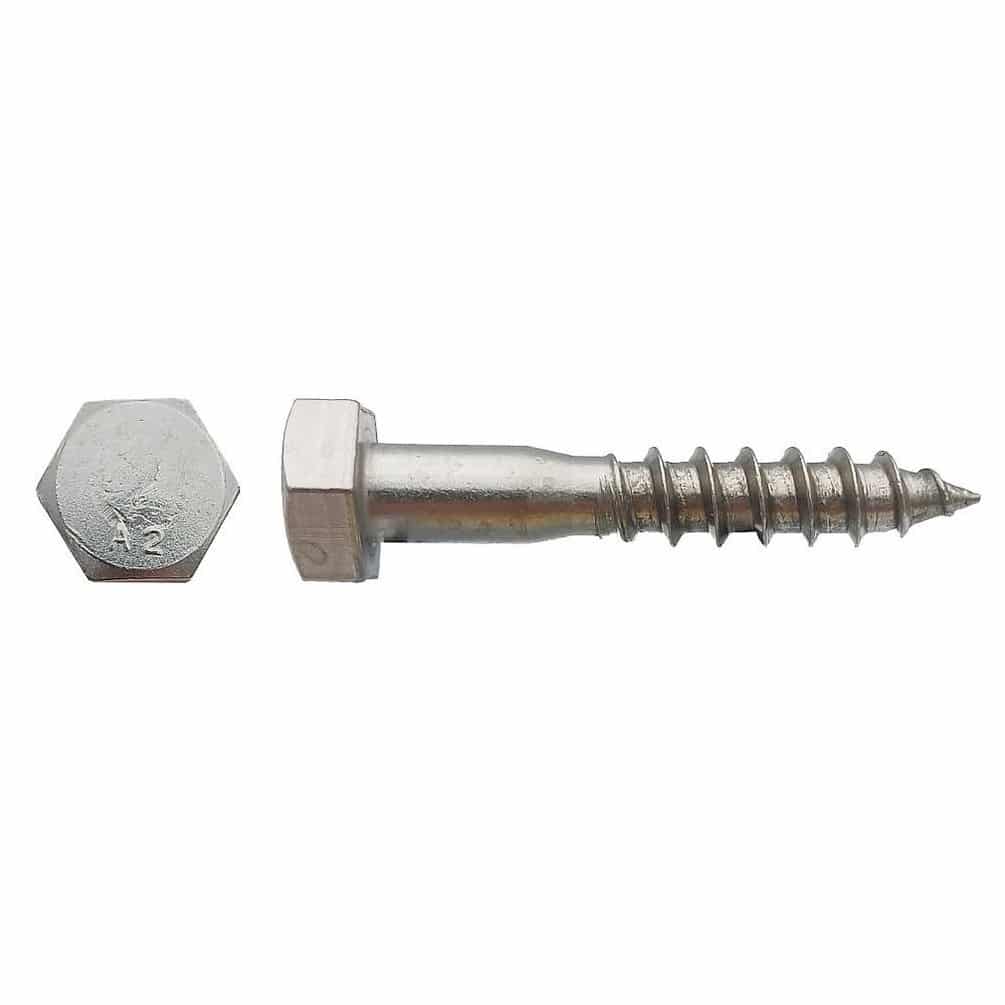 50 Tirefonds Bois Tête Hexagonale 10 x 100 mm - DIN 571 - Inox A2 - D-Work